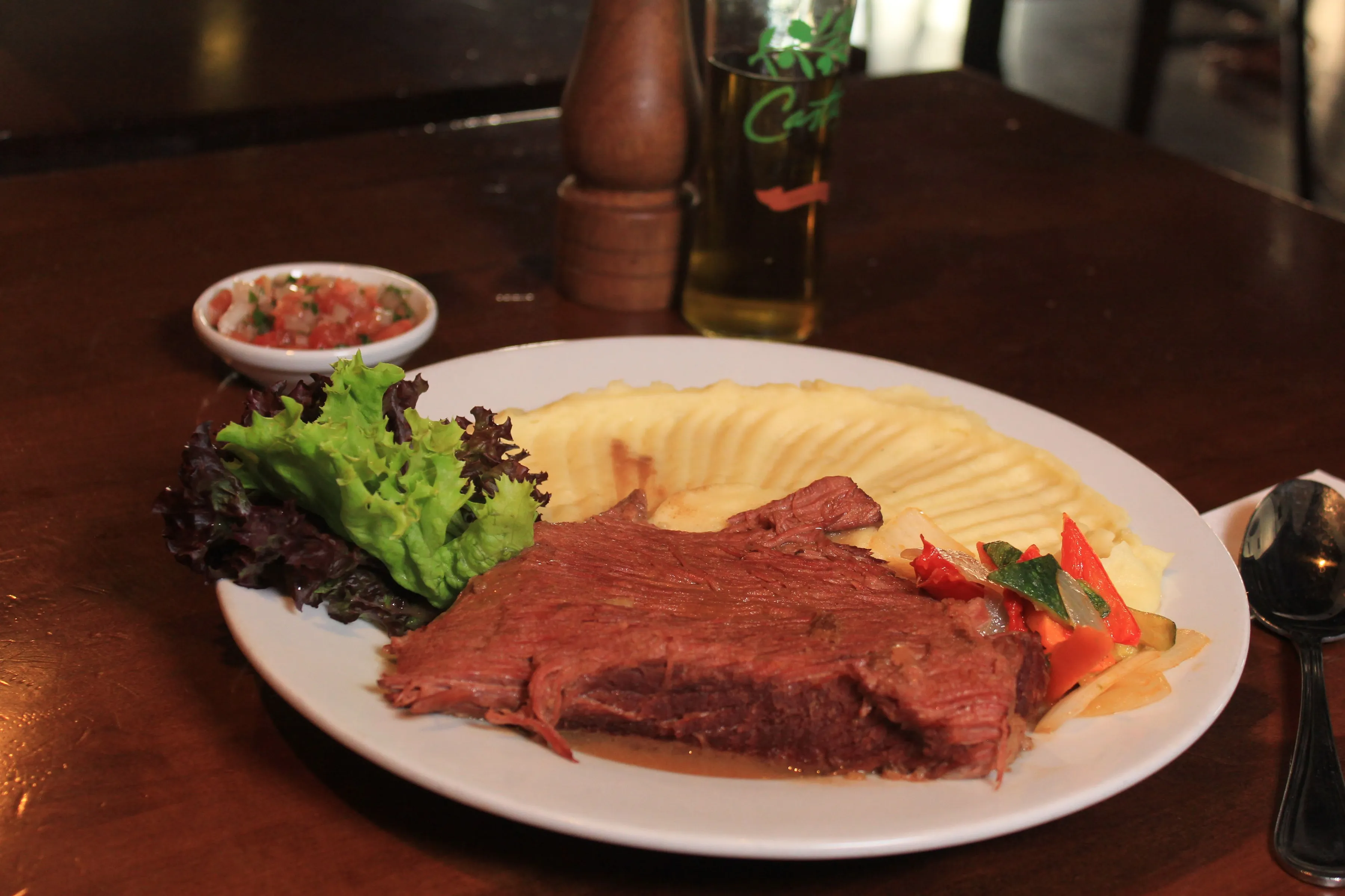 Pasta Linguini, filete de res, champiñones, crema de leche y queso parmesano.